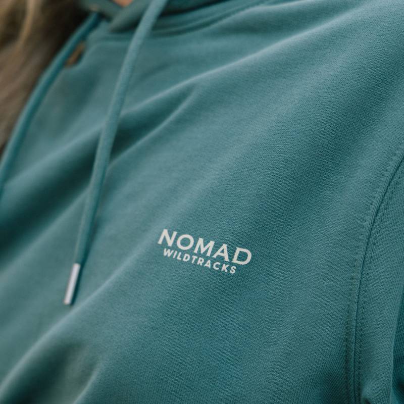 Esta  sudadera con capucha es una prenda unisex, super cómoda, resistente, con un diseño y color atemporal. Sudadera de calidad premium, talla bastante grande, recomendamos la talla XS para mujeres. En el frontal hay el logo simple sutil de Nomad Wildtracks y en la parte trasera el logo grande.  Algodón 100%, orgánico, 350 gramajes /m2